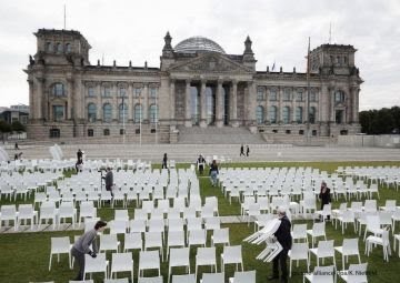 وتحت شعار “أخلوا المخيمات، هناك مكان فارغ!” احتجت منظمات إنسانية أمام البرلمان الألماني (بوندستاغ) بوضع ١٣ ألف كرسي أبيض في الساحة أمام مبنى البرلمان.