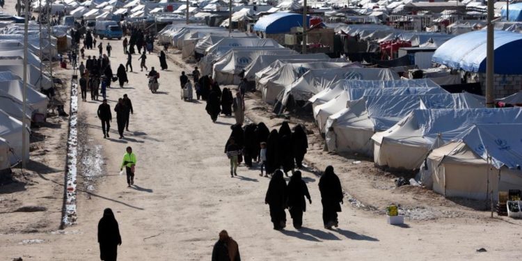 ويضمّ المخيم الذي يقع بالقرب من الحدود مع العراق، مجموعة كبيرة من نساء وأطفال كانوا يعيشون سابقاً في الأراضي التي يسيطر عليها تنظيم داعش الإرهابي.