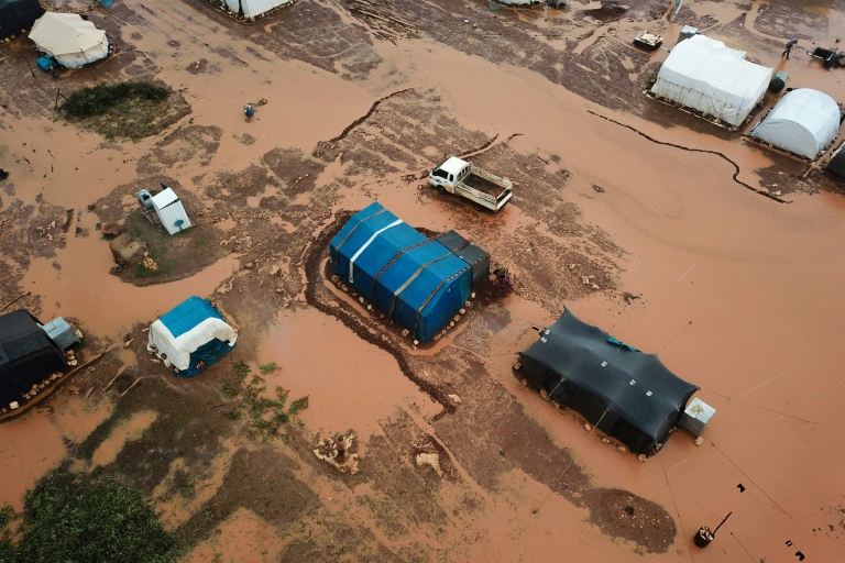 وشاهد مراسل وكالة فرانس خيماً دخلتها الوحول وانهمك قاطنوها بإخراج المياه منها وبإنقاذ مقتنياتهم وأطفالهم.