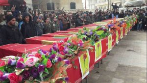 *وأكدت مصادر طبية من مشفى عفرين، أن عشرة أشخاص مدنيين فقدوا حياتهم، جراء قصف طائرات مقاتلة تركية، لمدجنة في قرية عنابكة – شرق عفرين، كانت عوائل نازحة تسكنه، سبعة منهم من عائلة واحدة، وأسماء الضحايا، هي: