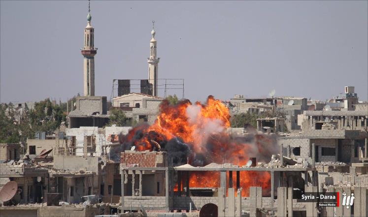 أعلن المرصد السوري لحقوق الإنسان، عن قصف جيش النظام لمنطقة درعا البلد، الأمر الذي أثار هلع المدنيين، وفرار آخرين من المنطقة سيرا على الأقدام، بينما تداهم قوات “الفرقة الرابعة” التابعة لجيش النظام منازل المدنيين.