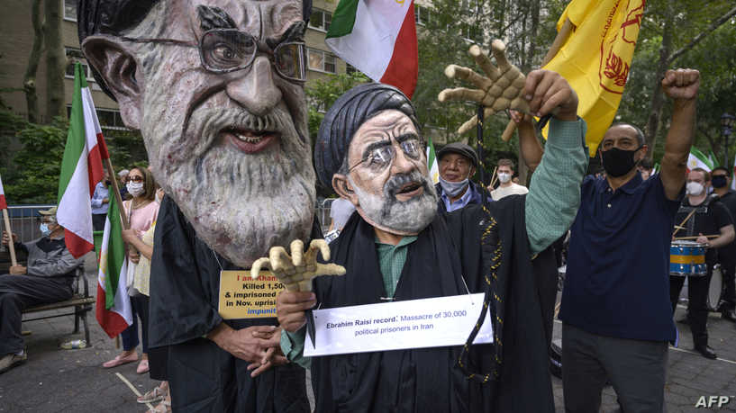 وقال المحتجون إن “رئيسي” لعب دوراً أساسياً في مذبحة عام ١٩٨٨ راح ضحيها نحو ٣٠ ألف سجين إيراني من جهات معارضة مختلفة.
