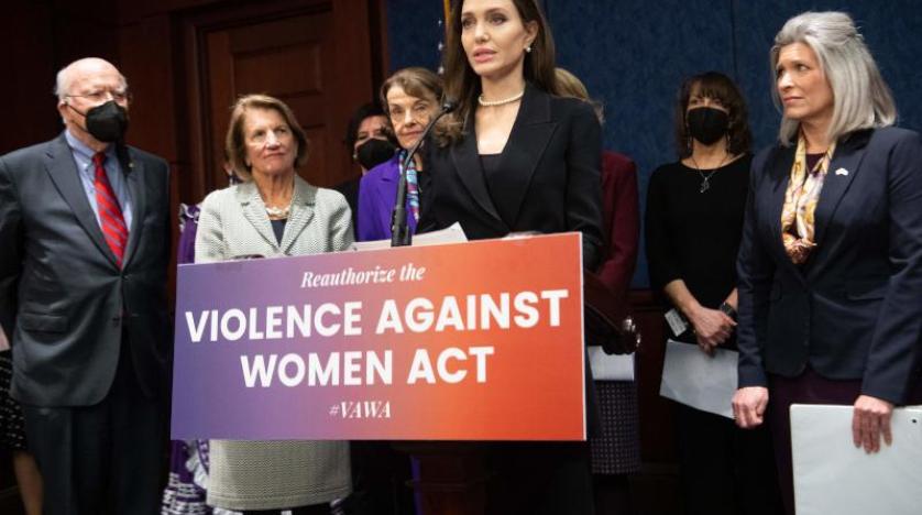 دعت النجمة الأميركية أنجلينا جولي، يوم أمس الأربعاء ٩ شباط/فبراير ٢٠٢٢، الكونغرس إلى أن يقر سريعاً قانوناً جديداً لمكافحة العنف ضد المرأة، ولاحظت دامعة أن هذه الظاهرة أصبحت “أمراً طبيعياً” في الولايات المتحدة.