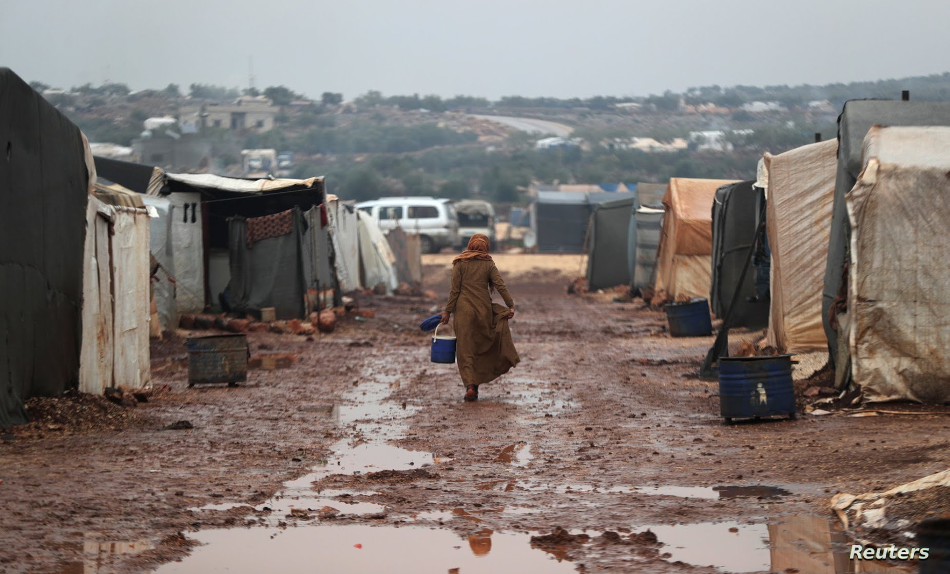 ونزح ما يقرب من ٧ ملايين سوري داخليا منذ اندلاع الحرب الأهلية في عام ٢٠١١. ويعيش حوالي ٢،٨ مليون فيما يقدر بـ ١٣٠٠ مخيم للنازحين داخليا شمال غرب البلاد.