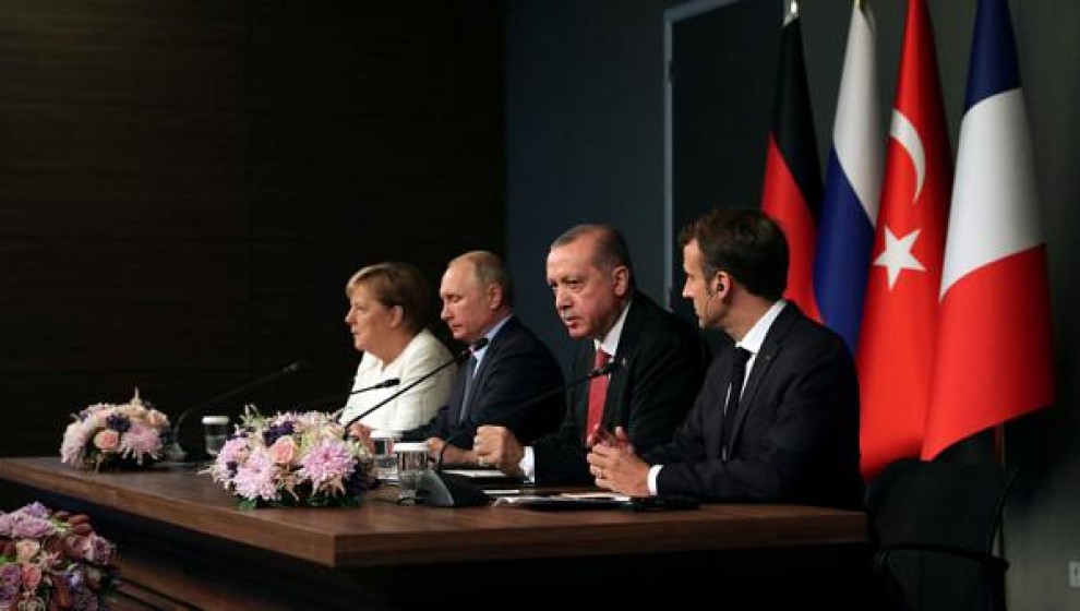 أظهرت القمة الرباعية في إسطنبول، يوم أمس السبت 27 تشرين الأول/أكتوبر، اختلاف الأولويات بين رؤساء كل من: “تركيا، روسيا، فرنسا، ألمانيا”، حول سوريا. ودعا البيان الختامي الصادر عنها، إلى تشكيل “لجنة صياغة الدستور السوري”، على أن تجتمع بحلول نهاية العام. وأكد أيضاً الحاجة إلى تهيئة الظروف في أنحاء سوريا لـ “عودة آمنة وطوعية للاجئين” و “تسهيل وصول المساعدات الإنسانية” إلى هذا البلد و “وقف دائم للنار” و “الاستمرار في قتال المتشددين”. وأظهر المؤتمر الصحفي للرؤساء الأربعة تباين الآراء بينهم، إذ تمسك “بوتين” بـ “محاربة الإرهاب” و “أمل أن تنتهي تركيا من إقامة منطقة منزوعة السلاح في إدلب السورية في وقت قريب”، بينما توعد “إردوغان” بقتال ما سماهم “الإرهابيين” شمال سوريا، في إشارة إلى الكرد، قائلاً: “الشعب السوري في الداخل والخارج” هو الذي سيحدد مصير الرئيس “بشار الأسد”. من جهتها، قالت “ميركل” إنه لا حل عسكرياً للأزمة السورية و”في نهاية هذه العملية السياسية، يجب أن تكون هناك انتخابات حرة يشارك فيها جميع السوريين، بمن في ذلك من يقيمون في الخارج”، الأمر الذي وافق عليه “ماكرون” وحض روسيا على “ممارسة ضغط واضح جداً على النظام السوري”.