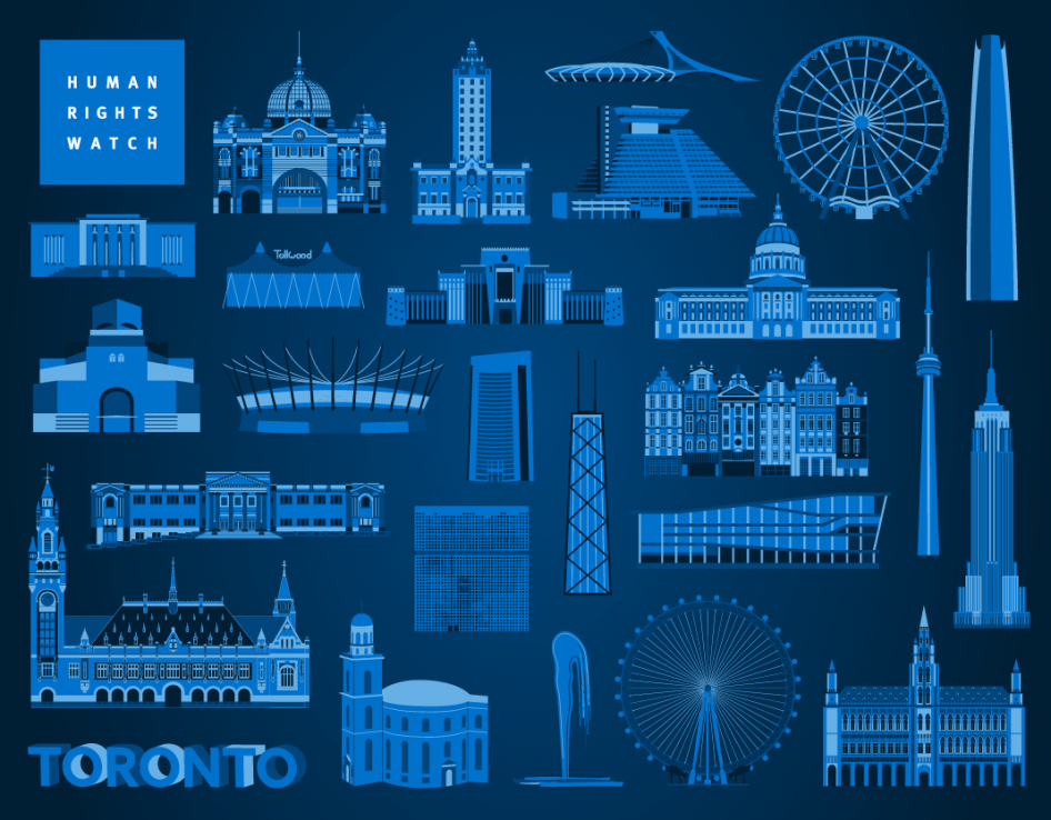 منذ 2013، يكتسي مبنى “إمباير ستايت” العالمي الشهير – حيث يوجد المقرّ الرئيسي لـ هيومن رايتس ووتش –باللون الأزرق، اللون المميّز للمنظمة، احتفالا باليوم العالمي لحقوق الإنسان. وهذا العام، ستُضاء المعالم التالية باللون الأزرق أيضا: