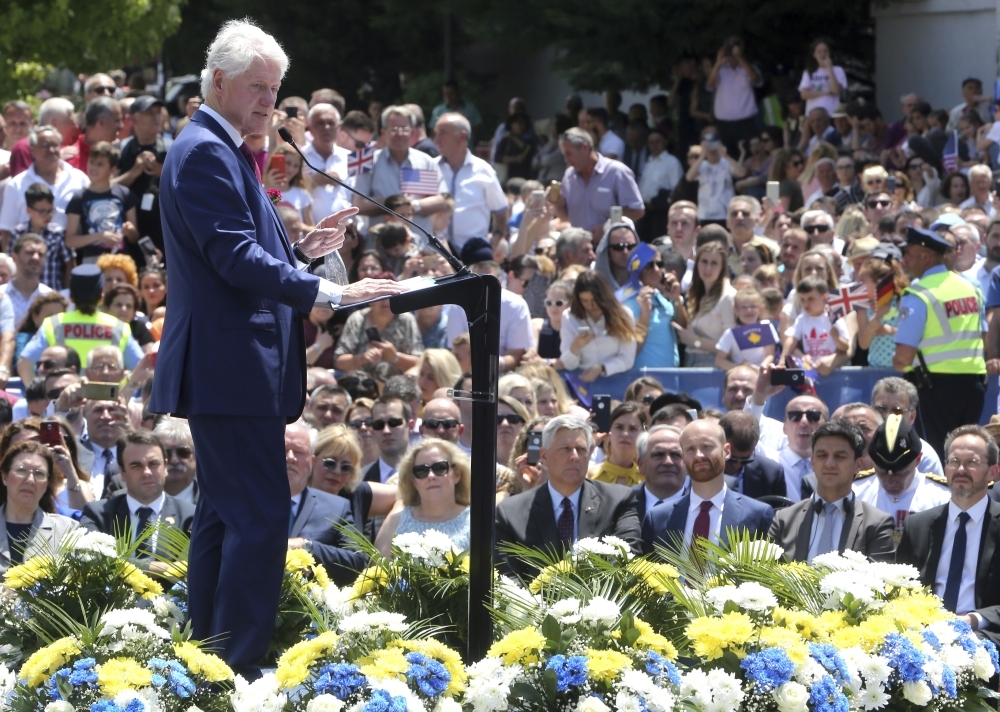 وحضر الاحتفال الرئيس الأمريكي الأسبق بيل كلينتون، الذي يحظى بشعبية كبيرة في كوسوفو، لدوره في انتهاء الحرب، حيث قال: “أحب هذه البلاد وسيبقى من دواعي شرف عظيم في حياتي أنني كنت الى جانبكم ضد تطهير إتني، ومن أجل الحرية”.