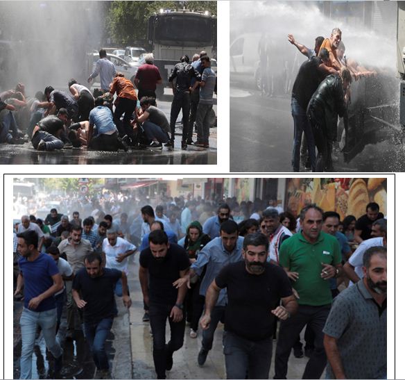 وفي المقابل استخدمت الشرطة التركية جميع الوسائل القمعية لتفريق المتظاهرين وأطلقت المياه وقنابل الغاز والرصاص المطاطي مخلفة إصابات في صفوف المحتجين.