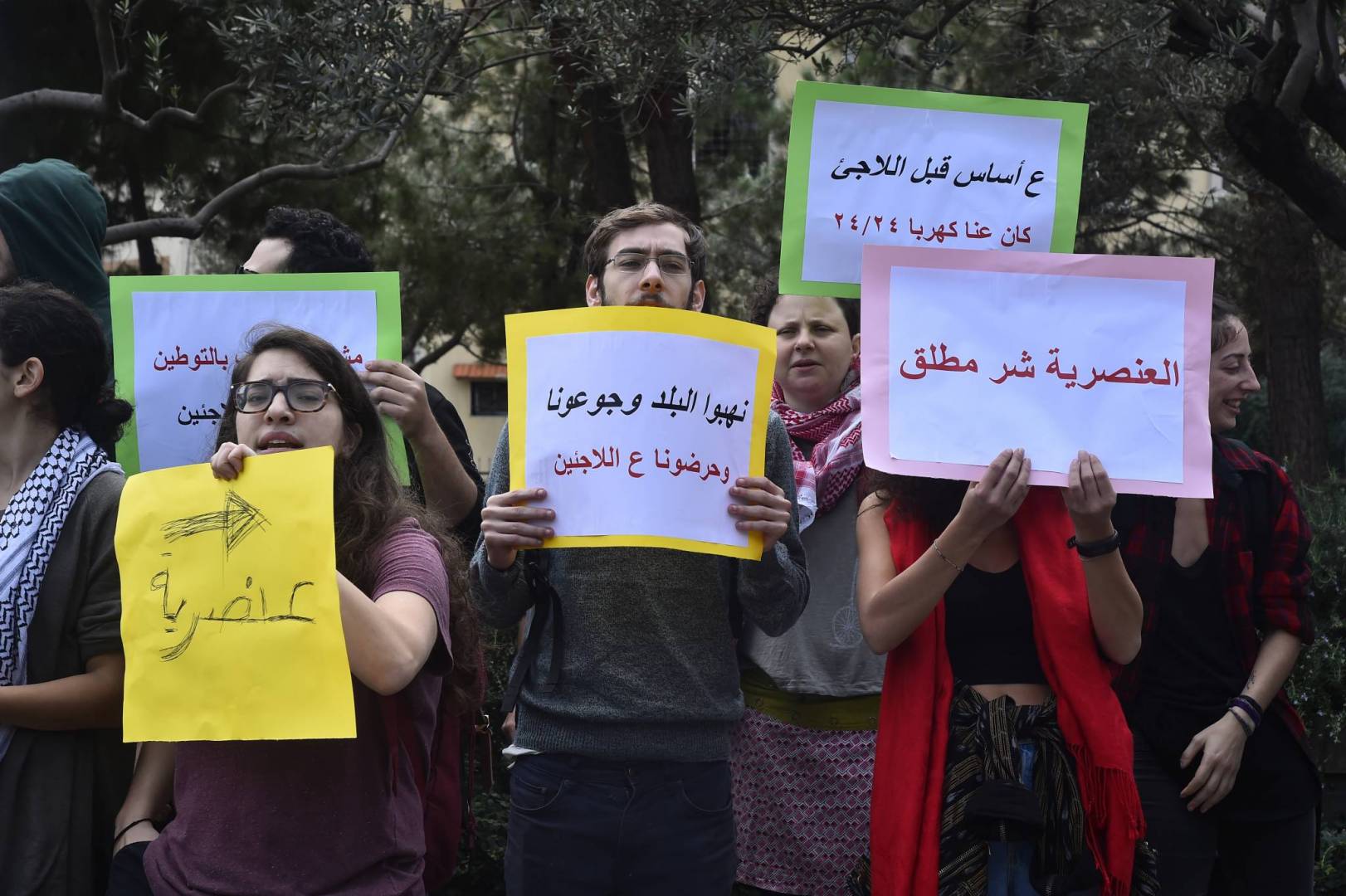 ونظمت مجموعة مناهضة لدعوة التجمع وقفة في الجهة المقابلة، رفعت فيها لافتات، واطلقت هتافات: “لا نريد كراهية”، و“ثورتنا على الظلم مش على المظلومين”، و“العنصرية شر مطلق واللاجىء مش عدونا”.