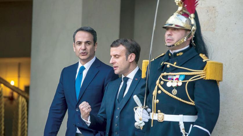جاء ذلك خلال لقاء جمع الرئيس الفرنسي برئيس الوزراء اليوناني كيرياكوس ميتسوتاكيس، في قصر الإليزيه، أمس، وطغى عليه على الخصوص الملف الليبي بتشعباته، ومنها البعد التركي.
