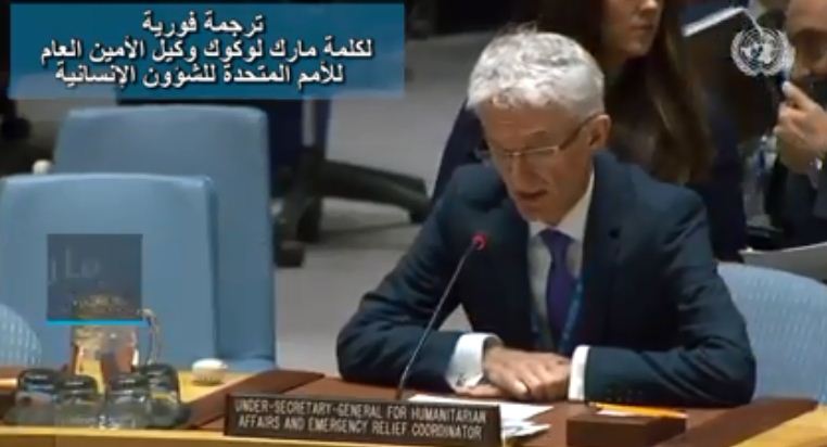 وفي جلسة مجلس الأمن الدولي حول “تنفيذ القرارات المتعلقة بالشأن الإنساني في سوريا”، أعرب لوكوك عن قلقه إزاء الوضع الإنساني السيء والمتدهور الذي يطال النساء والأطفال في شمال غرب سوريا بسبب القصف المكثف بالقنابل والمدفعية وغيره من أنواع القتال.