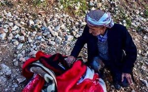 هي صورة معبرة، وتختزل ما يجري في عفرين من مأساة، لأب عفريني يدعى “محمد علي بوزو”، يقف حائراً أمام جثة أبنه الذي فقد حياته جراء القف الجوي التركي، والذي يدعى “آزاد محمد علي بوزو” (35 ) عاماً، على طريق باسوطة الواقعة جنوب عفرين، وعاجزاً عن فعل أي شيء أمام هول الفاجعة التي حلت به.